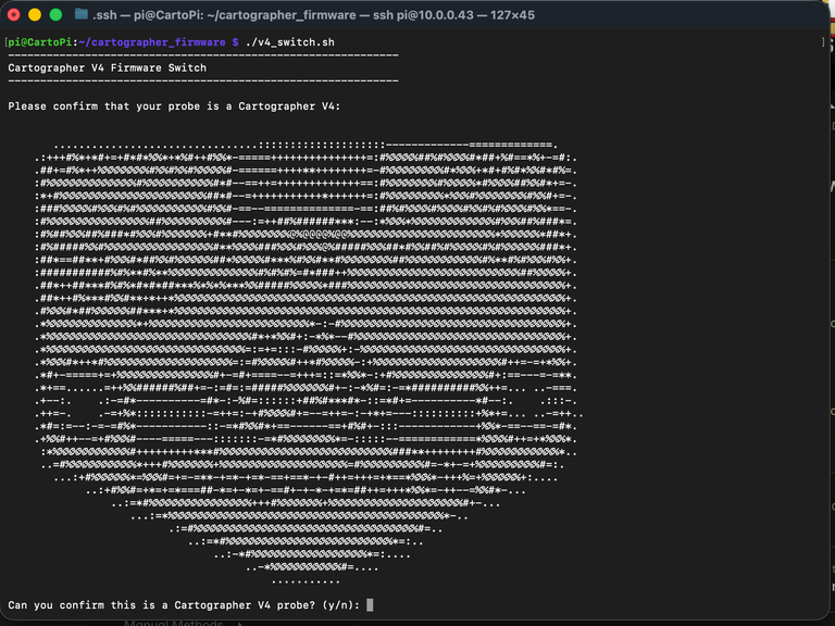 Confirm you are running a Cartographer V4 (this is the single PCB probe) and press Y