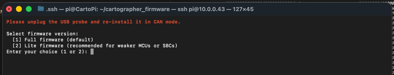 This will now give you a command (in green) for you to run once you have plugged your Cartographer V4 in to your CAN network.